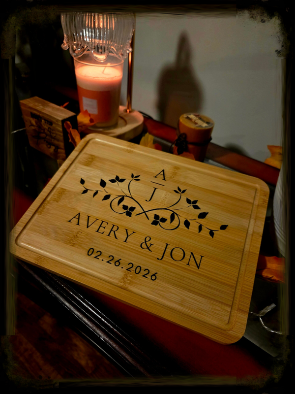 Create a lasting keepsake with our personalized laser engraved bamboo cutting board, beautifully crafted to celebrate life’s most meaningful moments. Each board is custom engraved with your chosen names, date, and design, making it a one-of-a-kind gift that’s both functional and decorative.